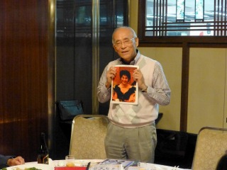 写真-2:初代部長・中垣さんのカラオケ師匠を写真紹介しての近況報告