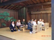 10月16日(火)午後、横浜市磯子区の久良岐公園内の能舞台で15回目の東燃謡の会を開催した。今回の参加者は清水、金沢市の遠方から、また観世流シテ方能楽師宮内美樹さんの参加も得て12名となった。宮内美樹さんは、人間国宝野村四郎先生の門下生であり、当会メンバーも野村四郎先生の指導を受けているご縁から、今回で2回目の参加となる。