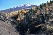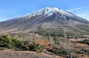 11月の初め、友人と2人で「富士山お中道」を歩いた。有料道路「富士スバルライン」を自動車で20分ほど上ったところが富士山・吉田口登山口で、標高は2300m。夏のシーズンには登山者だけでなく観光客も多く訪れ、洒落たレストランや店に囲まれた広場は身動きできないほどの混雑。外国からの旅行者も多い。