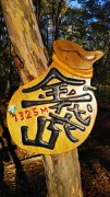 タワ尾根途中にある金袋山の表示。 何かありがたみを感じさせる図案である。 |