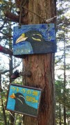 お目当てのウトウの頭表示板。上は 陶器製、下は版木を色付けしてある。 共に素晴らしい出来です。 |