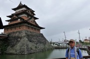 「高島城」の天守閣。天気は残念ながらあいにくの小雨模様でした。 |