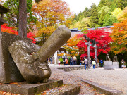 本殿周辺や広大な日本庭園「古峯園」のもみじは黄色や赤色に色付き、周囲の山々も見ごろを迎え、紅葉狩りの家族連れで大変賑わっていました。