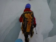 写真-3 3度目のエベレスト登山でクレバスを渡る三浦氏(ビデオ)