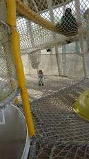 三歳ながら山の頂上まで幾つもの階段を休まず一気登り、そして、やったポ-ズを決める。らせんネットでは怖がりもせずはしゃぎ周り、なかなか帰ろうとしない孫に、じいじはくたくた。孫の体力に関心。