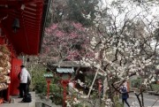 藤沢片瀬の常立寺は枝垂れ梅の名所として知られ、見頃を迎える時期には多くの参拝客が訪れます。 |