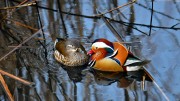 夕方の水辺の『おしどり』(カップル) |