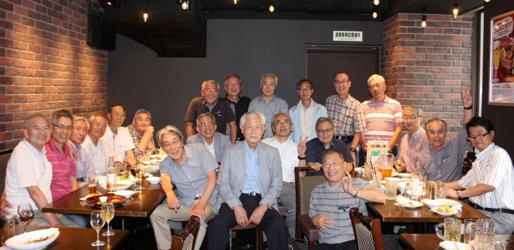 写真の説明(敬称略): 左端6名:小林(秀)、高野、越、伊藤、榊原、狩野 後方列9名:村田、柳本、塚田、竹中、前田(信)、小林(渉)、須藤、三枝、神原 中間列3名:川上、茅、原 最前列3名:大場、近藤、山本