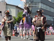 特別参加の野馬追い甲冑姿のパレード。福島県北東部の相馬3社で行われる合同例祭の行事。