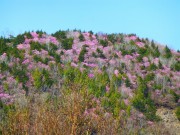 写真-1 山がピンクに染まるアカヤシオ群生地