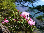 この時期の袈裟丸山は、新緑の中にアカヤシオ、シロヤシオ、ミツバツツジ、ヤマツツジ、アズマシャクナゲ、マメザクラ等の花が順次咲き、登山者を楽しませてくれます。今回のコースでは、満開のピンクのアカヤシオと咲始めたアズマシャクナゲ、白いマメサクラ、赤いヤマツツジなど沢山の花を眺める事ができ、充実した山歩きになりました。