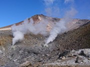 地獄谷の噴気音を聞きながら旭岳を望む |