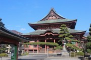 翌日はゆっくりと朝食をとり、信玄公が祀られている武田神社へ向かいました。神社は武田氏の居館であった躑躅ケ崎館跡に鎮座していますが、境内周囲の堀や土塁がほぼ戦国時代当時のまま保存されており一見の価値があります。その後は時間的に余裕もあったため、甲斐善光寺にも立ち寄りました。金堂は東日本最大級の木造建築で、吊り天井に描かれた2頭の龍は手をたたくと多重反響による共鳴が起こり、日本一の鳴き龍と呼ばれているそうです。全員がこの鳴き龍を確認していました。