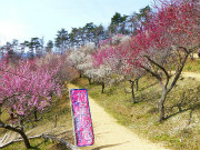 梅百花園(約170品種、約470本)は、2月上旬から花が咲きはじめたとの事、当日は丁度見頃を迎えており、山肌に赤、ピンク、白色などの花が咲き百花繚乱と云った感じでした(昨年秋の大型台風の影響で枝が折れたり、園地が崩れている場所もあり残念)。
