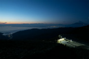 夕闇の西伊豆スカイライン 達磨山北側登山口。 左手前が戸田町、左奥が清水、右側が富士市 |