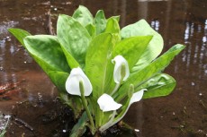 沼に咲いているミズバショウ |