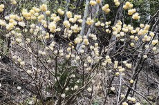 この木の皮から取った繊維が1万円札に使われている。他のパルプとの配合比率は極秘なのだそうだ。偽造防止のためだとか。ミツマタの繊維は毒があるので、虫に食べられない。だからタンス預金でも安心。しかし、私はタンス預金も無いからどうでも良い。 |