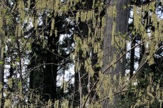 春の森で最初に咲く木の花。漢字で木五倍子と書く。果実はお歯黒の染料の五倍子(ふし)の代用として使われた。ふしとは、ヌルデの虫こぶ。 |