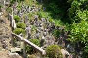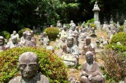 表に出ると五百羅漢の石像がある。清見寺の五百羅漢は山の斜面にあり海を眺めるように並んでいる。(写真4,5,6)