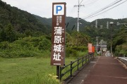 この城は、鳥瞰図のように蒲原の丘陵地の中で、周りの山とは深い谷で阻まれ、突出した形は山城としては天然の要害です。本郭は頂上に作られ、南曲輪と善福寺曲輪になっています。その間には、大堀切(空堀)が掘られています。その堀切からは両サイドの曲輪には梯子を掛けなければ登れないと思いました。本郭を守るため、たくさんの曲輪がつくられていますが、今はミカン畑になったり手入れがされず竹藪になっているそうです。足を踏み入れられませんでした。本郭までは、観光客用の道路があります。搦手口にある駐車場から南曲輪まで15分くらいです。