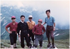 入社した翌年、最初の配属先である中研(後に総研)ワンゲル部夏山合宿に参画。コースは東北の朝日連峰縦走となり、メンバーは春成、長谷川、青木、多賀谷の各氏(敬称略)と金子。初めてのテント泊、自炊を体験し、山への思いを深めました。