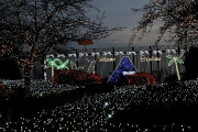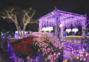 コッキング苑内の見頃を迎えた冬チュ-リップ広場のイルミネ-ション |