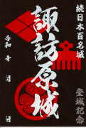 特別御城印 武田菱、赤鳥(今川家)、三つ葉葵が印刷されている。普通の御城印は、文字と背景の白黒が逆。家紋は同じ赤色