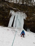 今年もアイスクライミングできる体力と気力があり、何ヶ所か案内してもらい挑戦しました。今シーズンは昨年より氷の状態が良いと感じました。少しの気温や雨で氷結状態が変わってしまい、登り易くも難しくもなります。氷の変化も少し判るようになりそれに対応できる時は嬉しいです。