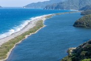 上甑島、長目の浜。幅50m、長さ約4kmにわたって続く砂州。 |