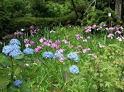 同じ時期には、鉢植えの白色や桃色のイワタバコ、境内の岩肌に群生して咲く紫色のイワタバコ、見頃となったハナショウブも見る事ができます。