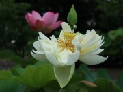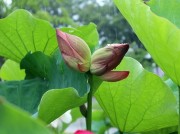 鎌倉市の大船フラワ-センタ-では、蓮の花が見頃を向かえています。 240種、450株の蓮を育てる同フラワ-センタ-でも、なかなか見る事が出来ない双頭蓮(そうとうれん)の花芽が付き、話題となりました。 双頭蓮は、1本の茎に2つの花を付ける珍しい現象であり、50年から100年に1度の現象と言われる事もあります。 フラワ-センタ-は、蓮の開花に合わせて開園時間を2時間早め、午前7時に開門しています。訪れた人達は、珍しい双頭蓮や紅白の蓮の花を、興味深く観て廻っていました。