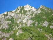 日本三大急登の黒戸尾根途中の刃渡り、両側は切れ落ち、雪、雨、強風時は要注意 |