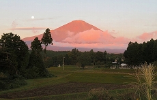 秋の富士山巡りのため、早朝、横浜の家を車で出発しました。御殿場から東富士五湖道路に向かう途中で「月と赤富士」を撮ることが出来ました。 その後、河口湖近く鳴沢村の道路で国鳥「キジ」にも偶然に出会い、早朝起きで得をした気分です。 以上