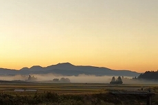 この日、滞在していた郷里、鹿児島県伊佐市は今秋の最低気温4.6度。前日に引き続き雲海発生のチャンスと近場の稲田に出て撮影。良く晴れ渡り、雲一つなく、遠景に霧島連山韓国岳が朝日を背に受けて浮かび上がっていた。手前では、前日ほどではないものの川内川の川霧に起因と思われる雲海が出現していた。