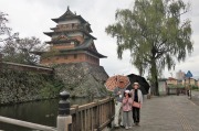 お城の南西側からは戦国時代の大天守と小天守、江戸期の泰平の時代に増設された辰巳附(たつみつけ)櫓、月見櫓と、城の全景が見渡せます。 |