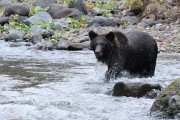見ている間に2回鮭2匹捕食。完食すればいいのにちょこっとかじって次の捕食を始める。季節の終わりで美味くない? 帰り際、車の横に鮭の干物! が散乱しているのに気がついて、ここで食ったかと臨場感に少しビビった。ヒグマは捕食に夢中でこっちを時々見るけど、気にかけていないようでした。メスらしく優しい顔をしていました。 |