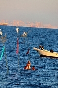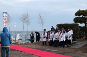 毎年1月初旬の早朝(今年は1月7日 7時~)、千葉県木更津市中島区の6集落から若衆が参加し、厳寒(外気温3℃)の海に入り、長さ5mあまりの竹の先に御幣(ごへい)を付けた「梵天(ぼんてん)」を海中に立て、大漁、五穀豊穣を祈願する勇壮な行事を見ることが出来ましたので、写真紹介します。