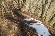 尾根コースの標高1,350m付近、残雪、氷結部分に注意しました。 |