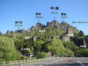 中ノ嶽神社からの妙義・金洞山全景。西岳、星穴岳とも険しそう。 |