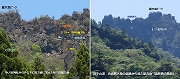 右=百合若大臣が矢を放った所から見た星穴岳。薄い岩山です。 |