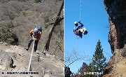 右=順調に空中懸垂下降中。狭い着地点を気にしています。 |