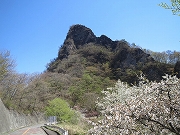 筆頭岩は妙義によくある屏風様な瘠せた岩山です。下に道路があり岩が動くし落石厳禁の所でビビリました。 |