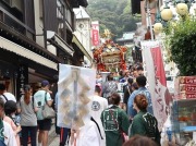 伝承によると・・昔、腰越の小動神社に祀られていた祭神二体のうち、海に流された男神が江ノ島の漁師に拾いあげられ、江ノ島の八坂神社に祀られました。そのような所以から、八坂神社のご神体を小動神社の女神に会わせるために、神輿が海を渡るそうです。