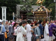 写真1 神事の後、海上渡御に向かい参道を下る八坂神社の神輿