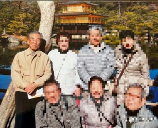 全東燃OB会長の杉山健一さんを囲んで記念写真に収まる。