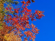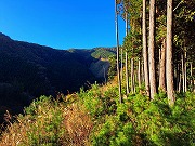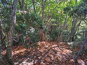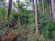 案の定久し振りの藪漕ぎから始まって手足総出の登山開始であった。 2mを優に超える高さの藪(ススキ、低木)を搔き分け道なき道を進む、やっとのことで尾根に出て、残った朝食を美味しく頂く気分の良さ。 林道でやっと出てきた紅葉にホットする。