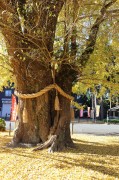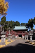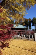 鹿野山神野寺は、1400年前に建立された関東最古の名刹で、境内へ続く参道の左手には、樹齢推定350年とされる大銀杏(高さ18m、胴囲6.2m)がそびえ立ち、大きな枝に育った黄色の葉を落とし続けていました。 落ち葉は、巨木の周囲に黄色のじゅうたんを敷き詰めた様な色調を作り出し、山門近くのモミジの紅葉をかすませて参拝者を楽しませていました。