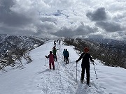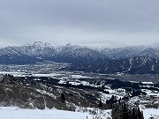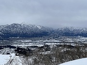 2日目は、ムイカスノーリゾートのリフトで魚沼スカイライン(車道)へ上がり、目の前に広がる魚沼盆地や、八海山、越後駒ケ岳、巻機山などの名山の眺めを楽しめました。高曇りの天気なので、青空に白銀の山々とはいかず、墨絵のようであったのが少し残念でしたが、これも雪国の風景でしょう。ここから上越国際スキー場まで、雪の積もったスカイラインをのんびりとスノーシューで楽しみました。