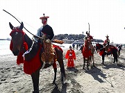 会場には多くの見学者が訪れ、趣が一味違う海辺で行われた武者行列と砂浜を疾走する人馬一体の流鏑馬の妙技を楽しんでいました。