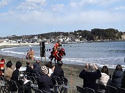 湘南江の島に春を告げる恒例のイベント「第41回湘南江の島春まつり」が3月9日(土)と10日(日)の2日間開催されました。 片瀬東浜海岸で9日(土)に行われた今年で第4回目となる武者行列と流鏑馬行事は、祭りの1番の見所でした。